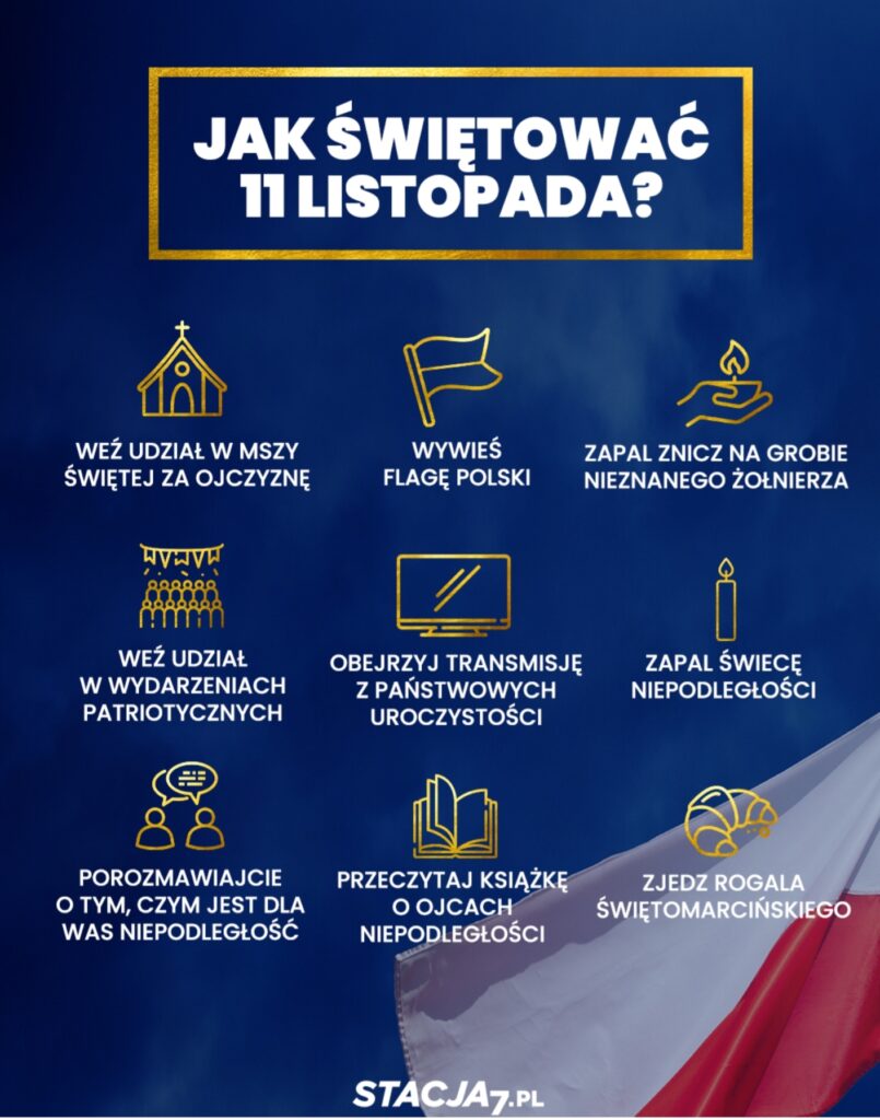 11 listopada to jedno z najważniejszych świąt państwowych w Polsce – Narodowe Święto Niepodległości. Upamiętnia ono odzyskanie przez Polskę niepodległości w 1918 roku, po 123 latach zaborów rosyjskiego, pruskiego i austriackiego. W tym dniu, po zakończeniu I wojny światowej, Polska ponownie pojawiła się na mapie Europy jako suwerenne państwo. Symbolicznie datę tę wiąże się z przejęciem przez Józefa Piłsudskiego władzy wojskowej w Warszawie. 11 listopada to dzień, w którym Polacy łączą pamięć historyczną z duchową refleksją. To czas wdzięczności za odzyskaną wolność oraz modlitwy o jej zachowanie. Święto to przypomina zarówno o patriotyzmie, jak i o chrześcijańskich wartościach, które przez wieki kształtowały polską tożsamość narodową.